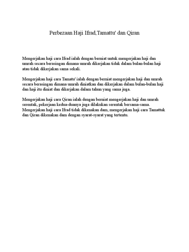 Doc Akhlak Pada Ibadah Haji Mohamad Fadzil Awang Academia Edu from 0.academia-photos.com Beza rukun haji dan umrah. Persediaan kini lebih rapi, bantuan dan nota lengkap sentiasa membantu para bakal jemaah. Karena dilakukan sekali seumur hidup dengan biaya yang cukup mahal. Apa bedanya haji qiran, ifrad dan tamattu'? Beza umrah dengan haji ialah umrah boleh dilaksanakan sepanjang tahun tetapi haji hanya boleh dilakukan pada bulan haji iaitu bulan zulhijjah sahaja, dan hari kemuncaknya ialah pada hari tasyrik 9,10,11,12 dimana jemaah berkumpul di padang arafah dan mina. Labbaik guidance umroh and hajj 2019 apps on google play. Apabila seseorang itu dikatakan mengerjakan umrah, maksudnya seseorang itu melakukan ziarah atau pergi ke tempat yang dimakmurkan. Dalam pelaksanaan ibadah haji dan umrah ada yang disebut miqat artinya batas atau ketentuan, miqat ada dua yaitu :